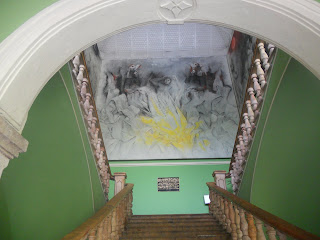 Today, I had class and then went to El Centro again. We tried to go to the art museum but it was closed for Mother’s Day. Why on earth would a business be closed on a Tuesday for Mother’s Day?? It seemed super weird to me. So we went to the Palacio del Gobierno (govenment's palace) instead. It was cool. It’s the location for the offices of the government of Yucatán still, over a hundred years after it was built. I believe it originally was the residence of the Governor, hence the name. There was a ton of artwork and pretty much all of it depicted the suffering of the indigenous people (Mayans) when the Spaniards arrived. It was really sad. Here are a bunch of pictures I took from El Palacio del Gobierno.